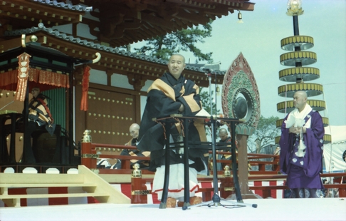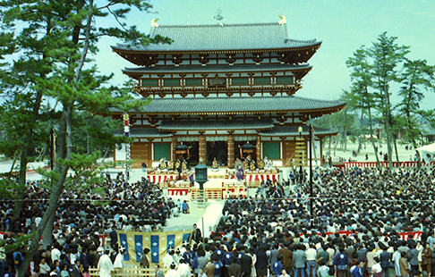 令和8年は「金堂復興五十年」の年です。当時の高田好胤和上の勧進行脚の補佐役を務めた昭和・平成時代の復興運動の語り部