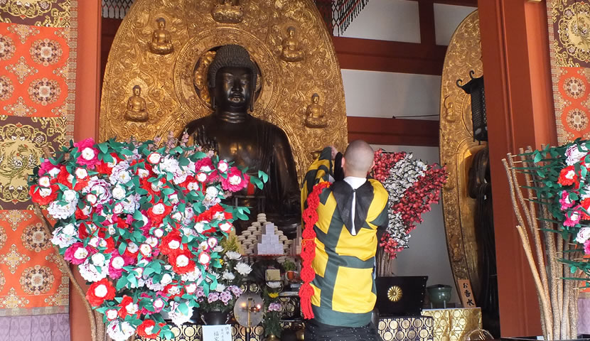 23日にお身拭いが終わると、堂内の荘厳が始まります。