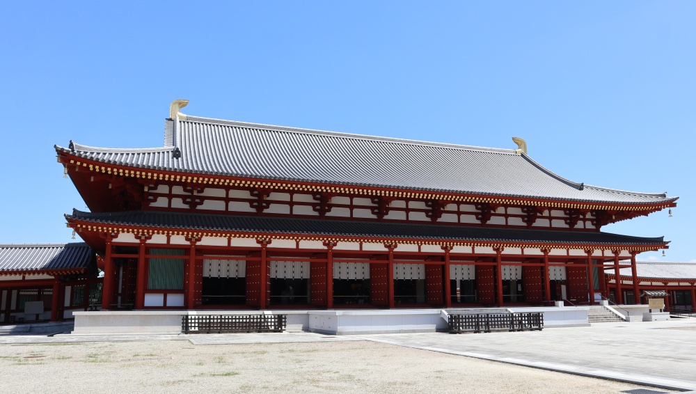 大講堂は、薬師寺の宗派である法相宗の教え「唯識」を学ぶ場所です。唯識の教主である弥勒如来が大講堂のご本尊です。弥勒如来は、弥勒菩薩が釈尊滅後5億7千6百万年ののちに悟りを開かれたときのお姿です。