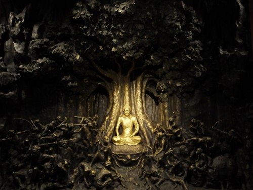 当初、薬師寺の西塔初層には、お釈迦様の生涯を八場面に分けたうち果相の四相(成道・転法輪・涅槃・分舎利)が、