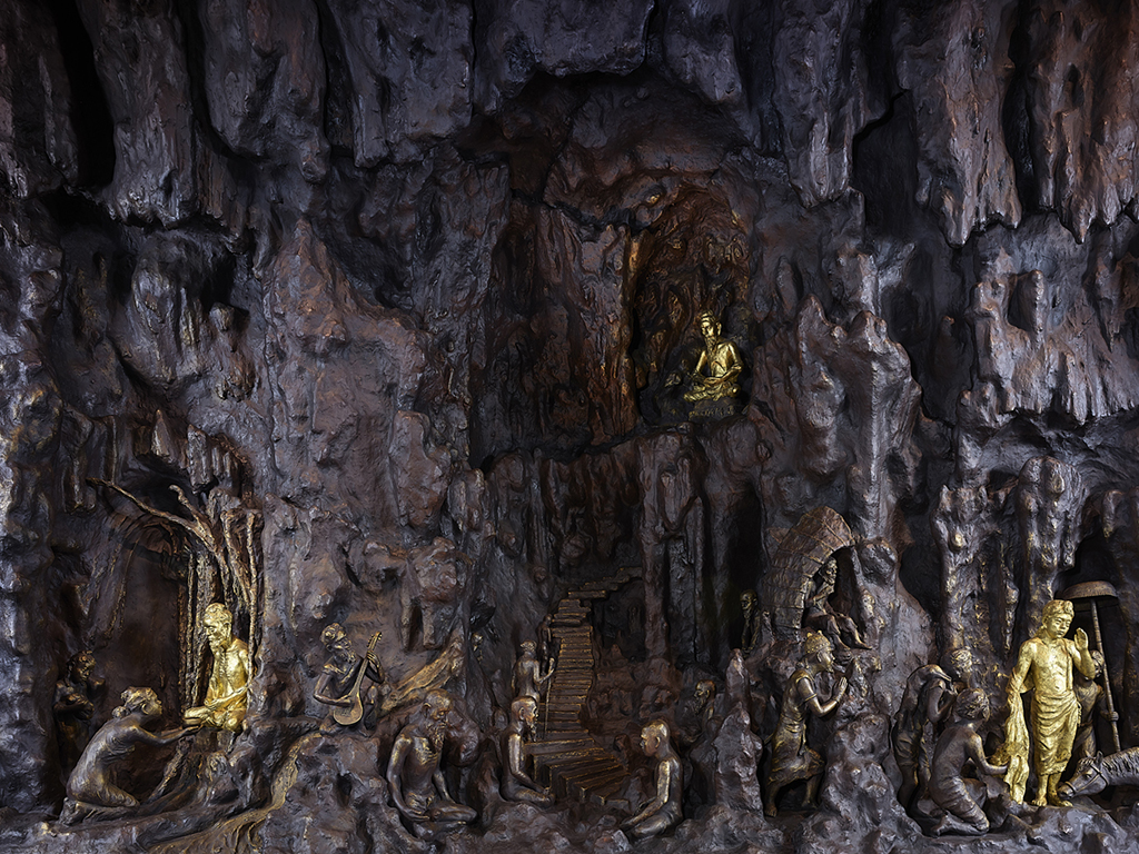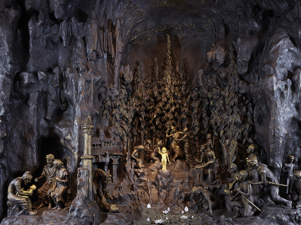 東塔の内陣には、文化勲章受章者の中村晋也氏による釈迦八相像のうち因相の四相が祀られています。