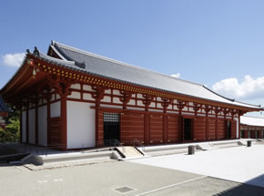 薬師寺の伽藍の中で最大のお堂が大講堂です。伝統工法のなかに、現代工法を取り入れながら再建されました。