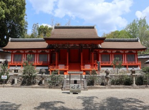 社殿は全体に西面し、本殿・脇殿とも小高い石積みの壇上に建っています。 休ヶ岡八幡宮は寺域の最も南に鎮座する薬師寺の鎮守(守り神)です。