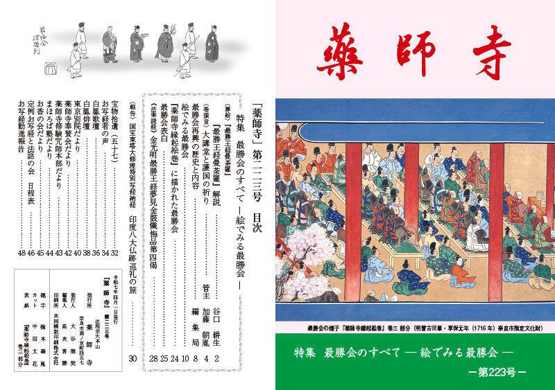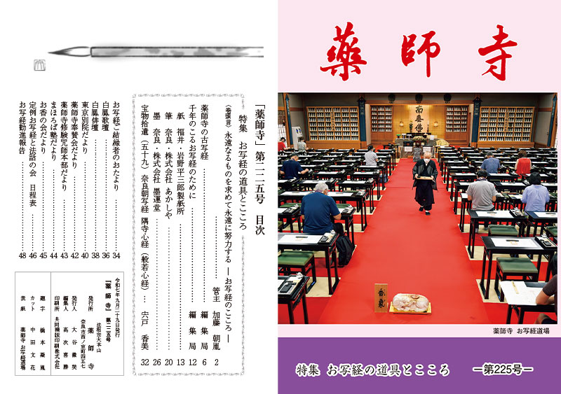 機関誌『薬師寺』は、薬師寺での行事や宗教活動をお知らせするとともに、仏教に対する理解を深めて頂くために発行しているものです。