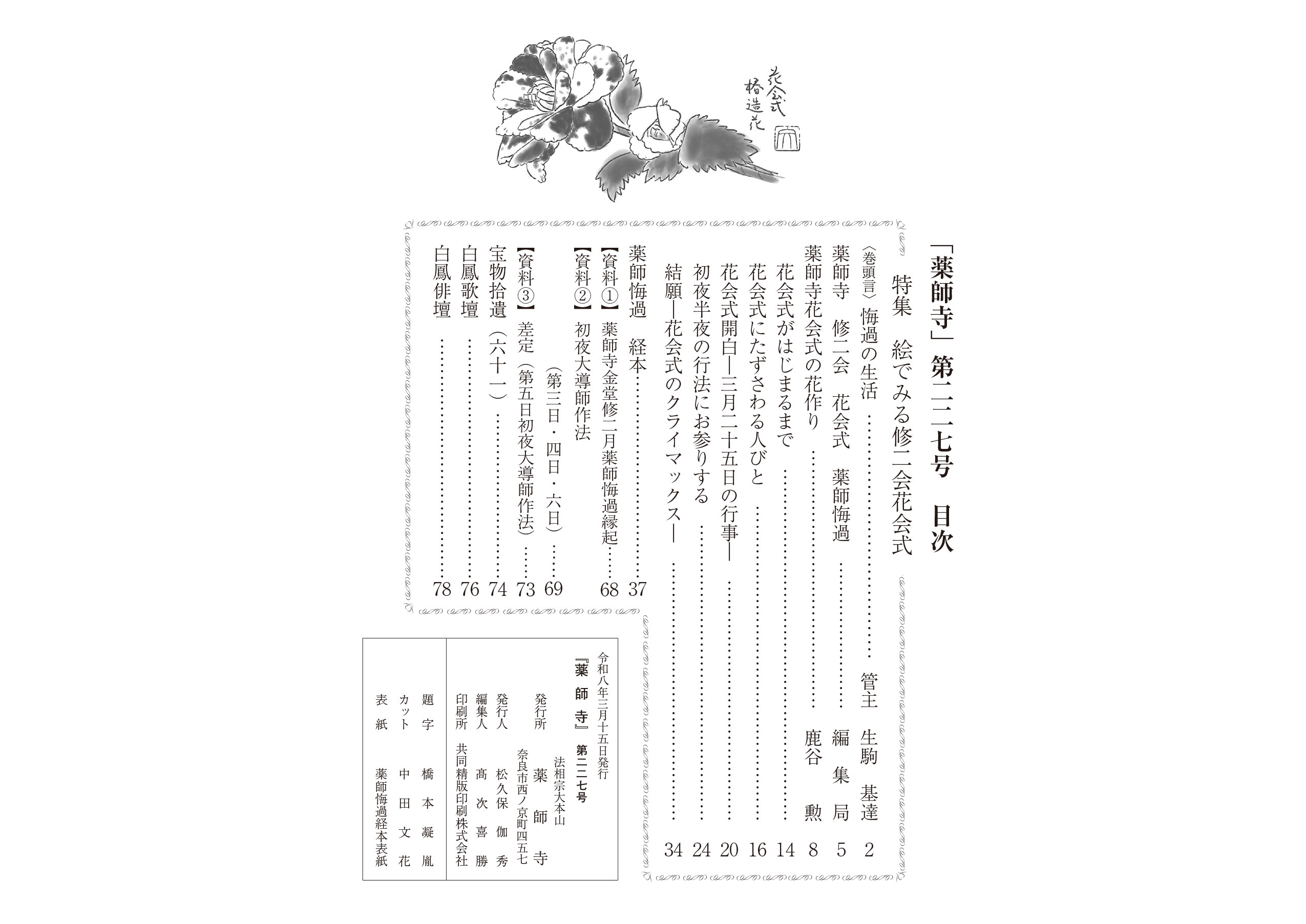 薬師寺 広報室 機関誌担当 電話 0742-33-6001 FAX 0742-33-6004