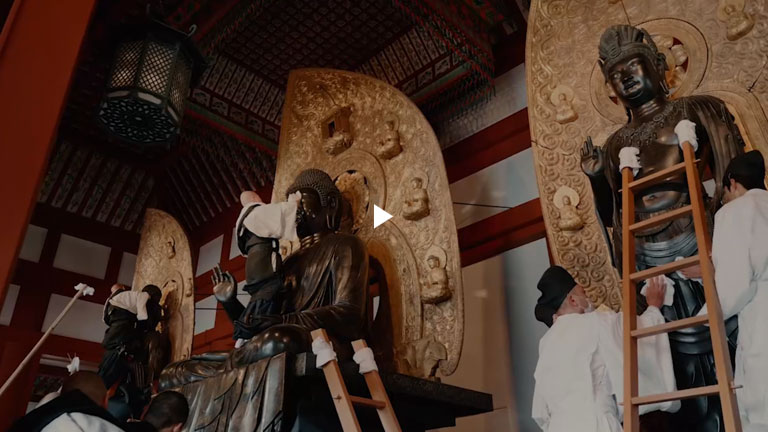 毎年12月29日と3月23日に行われるお身拭い。これは修正会と修二会にお供えするお餅をお造りする時に、お米を蒸すために使われたお湯によって行われます。仏様のお体をお湯で絞られた浄布でお拭きします。